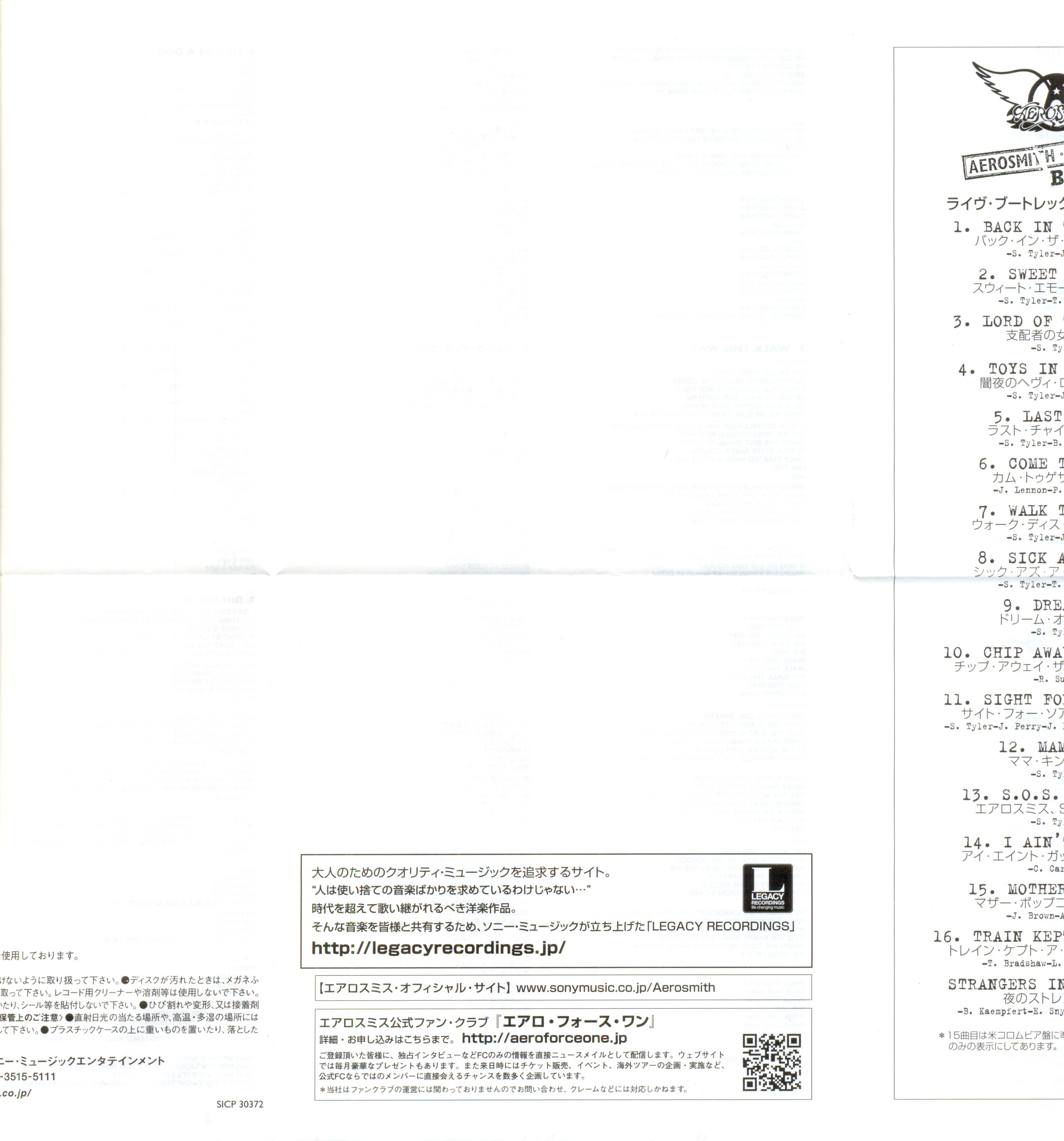 Aerosmith Live! Bootleg : Booklet 9 JPN