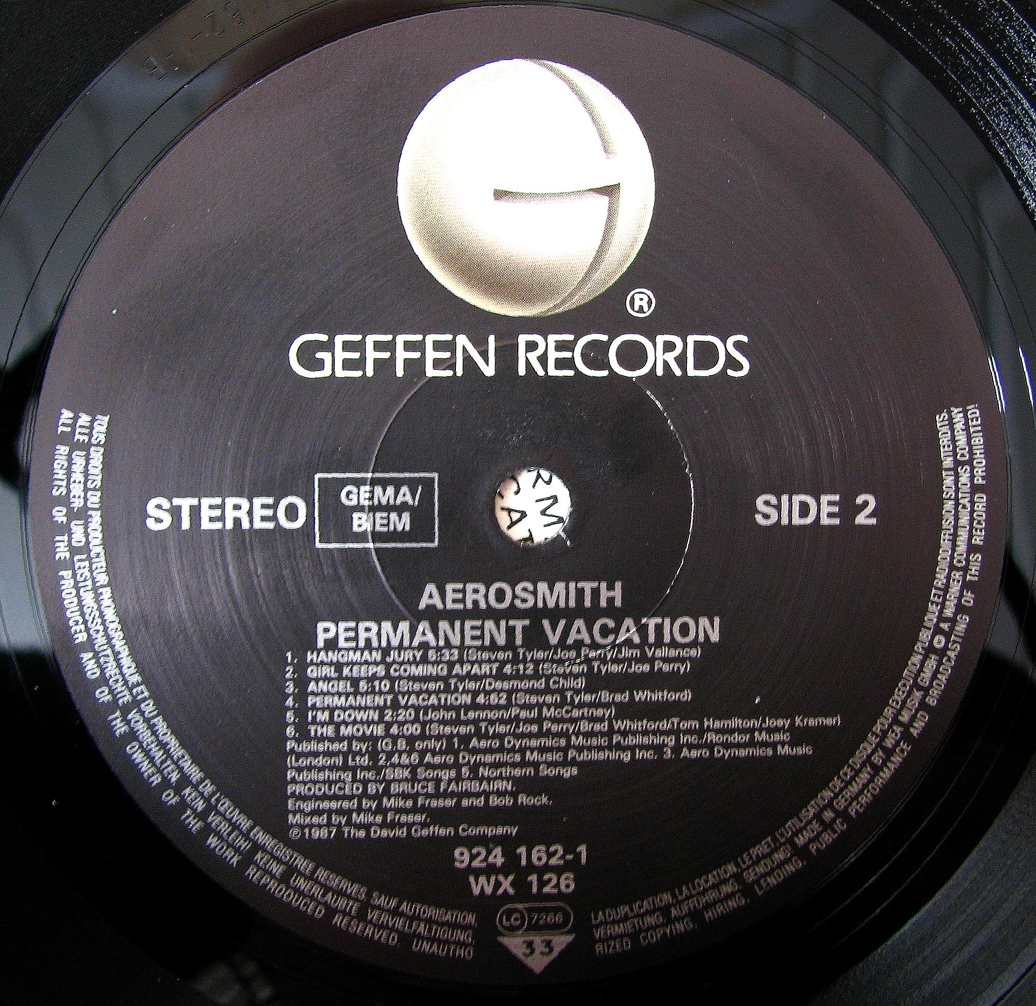Aerosmith Permanent Vacation : LP Label B
