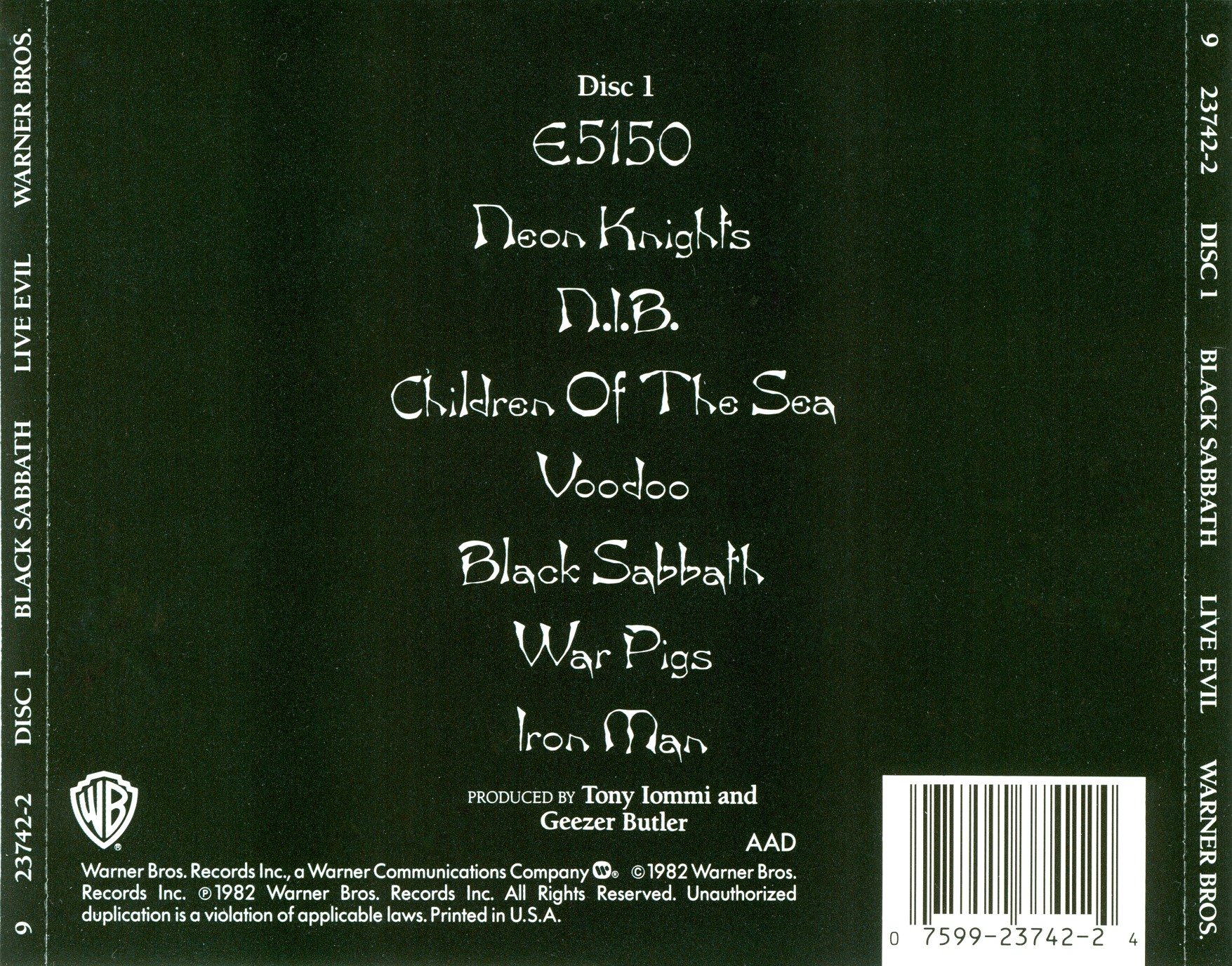 Black Sabbath Live Evil; 2cd : Back