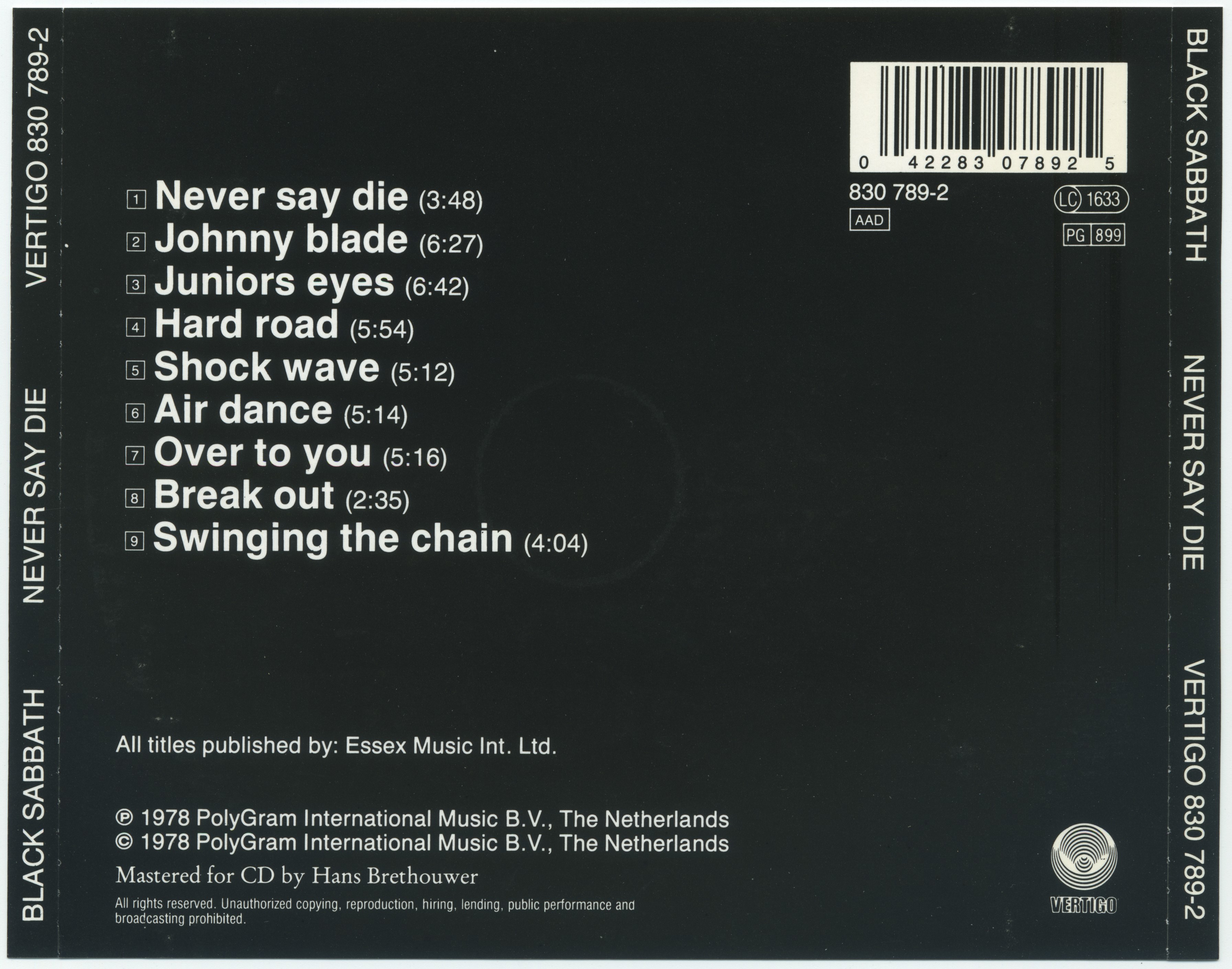 Black Sabbath Never Say Die! : Back