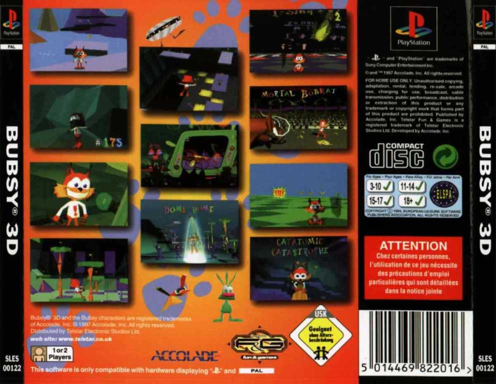 Bubsy 3D PAL PSX BACK
