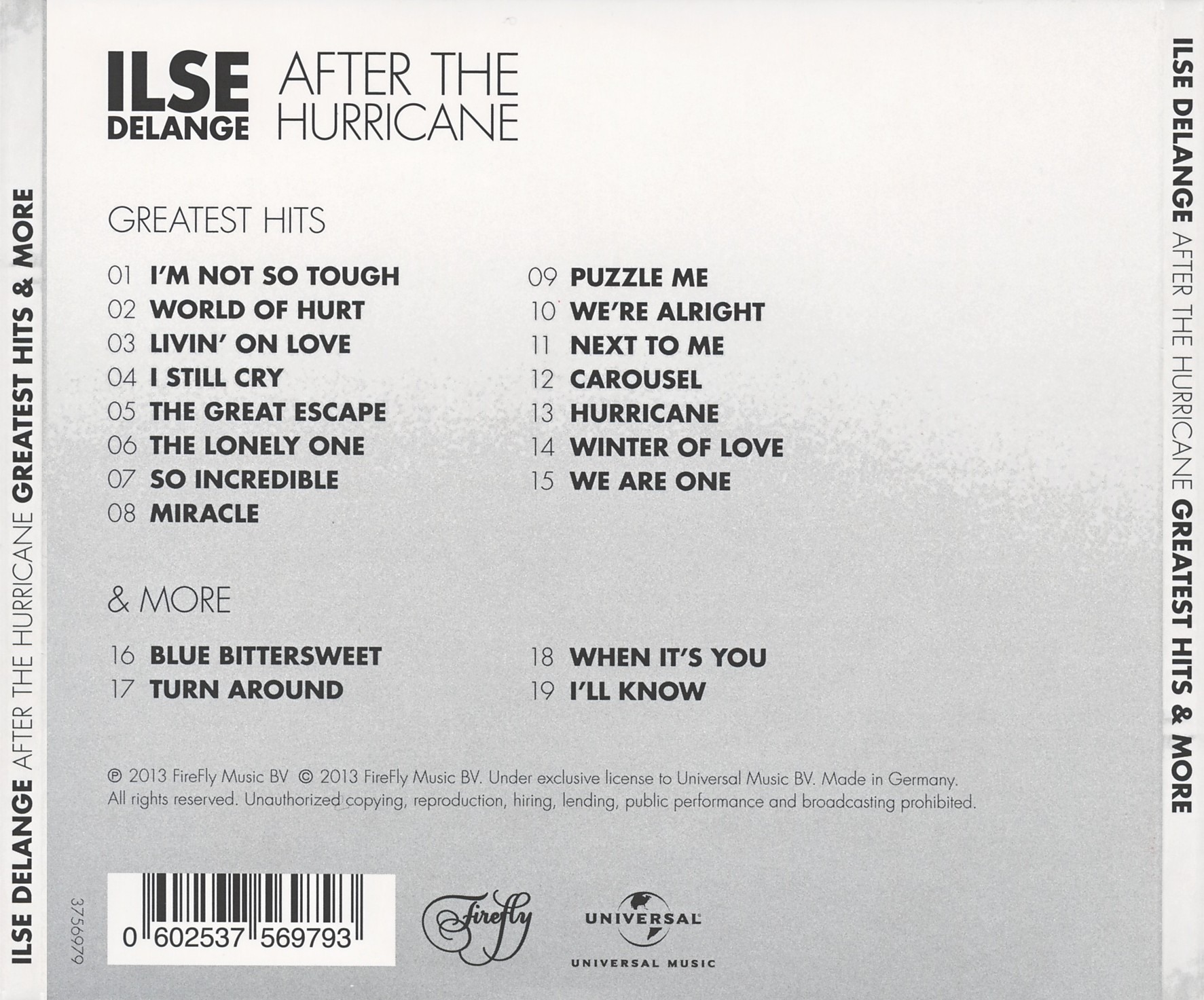 Ilse DeLange After The Hurricane; Greatest Hits & More : Back