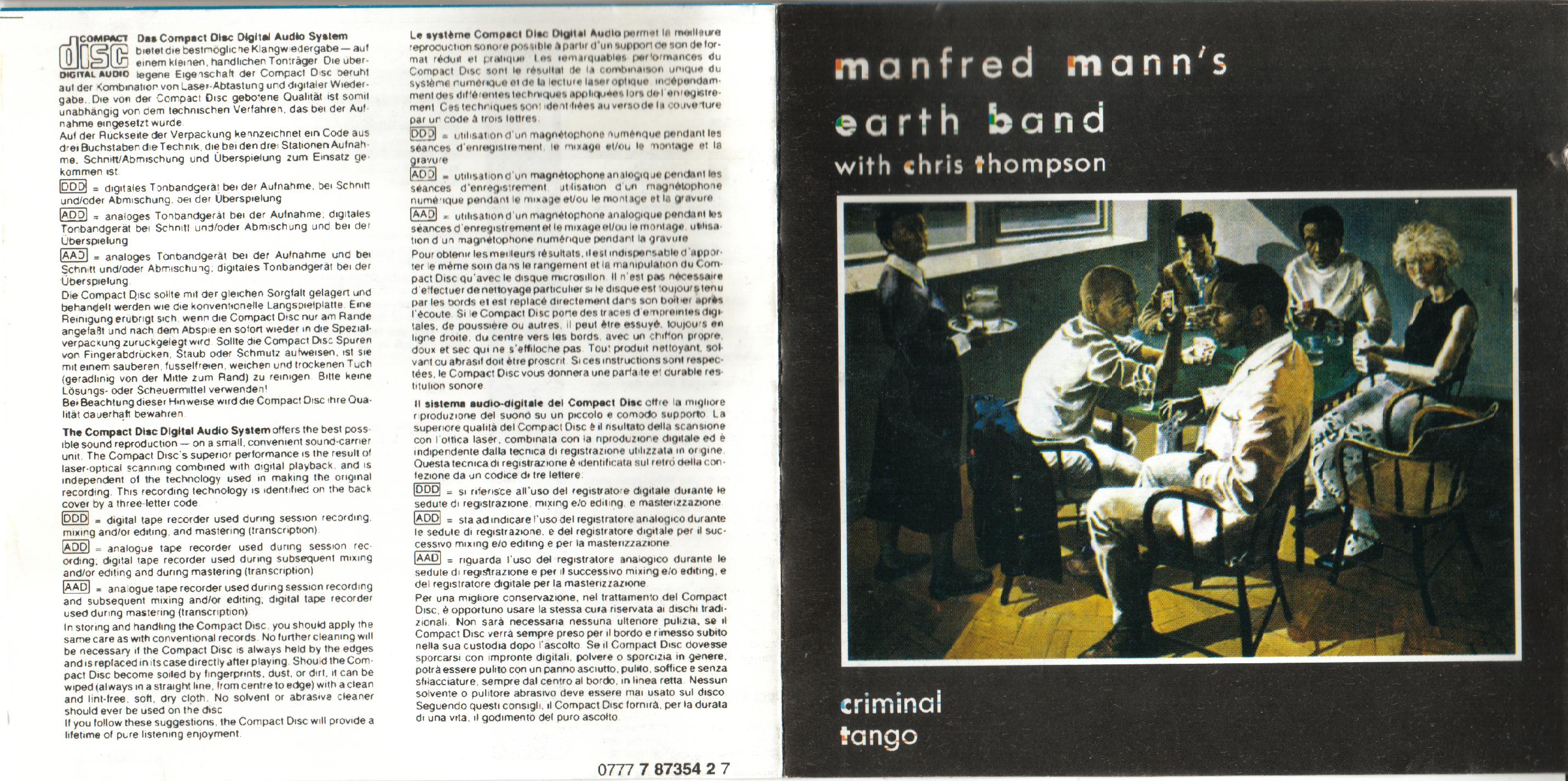 Manfred Manns Earth Band Criminal Tango : Front + Inlay nl