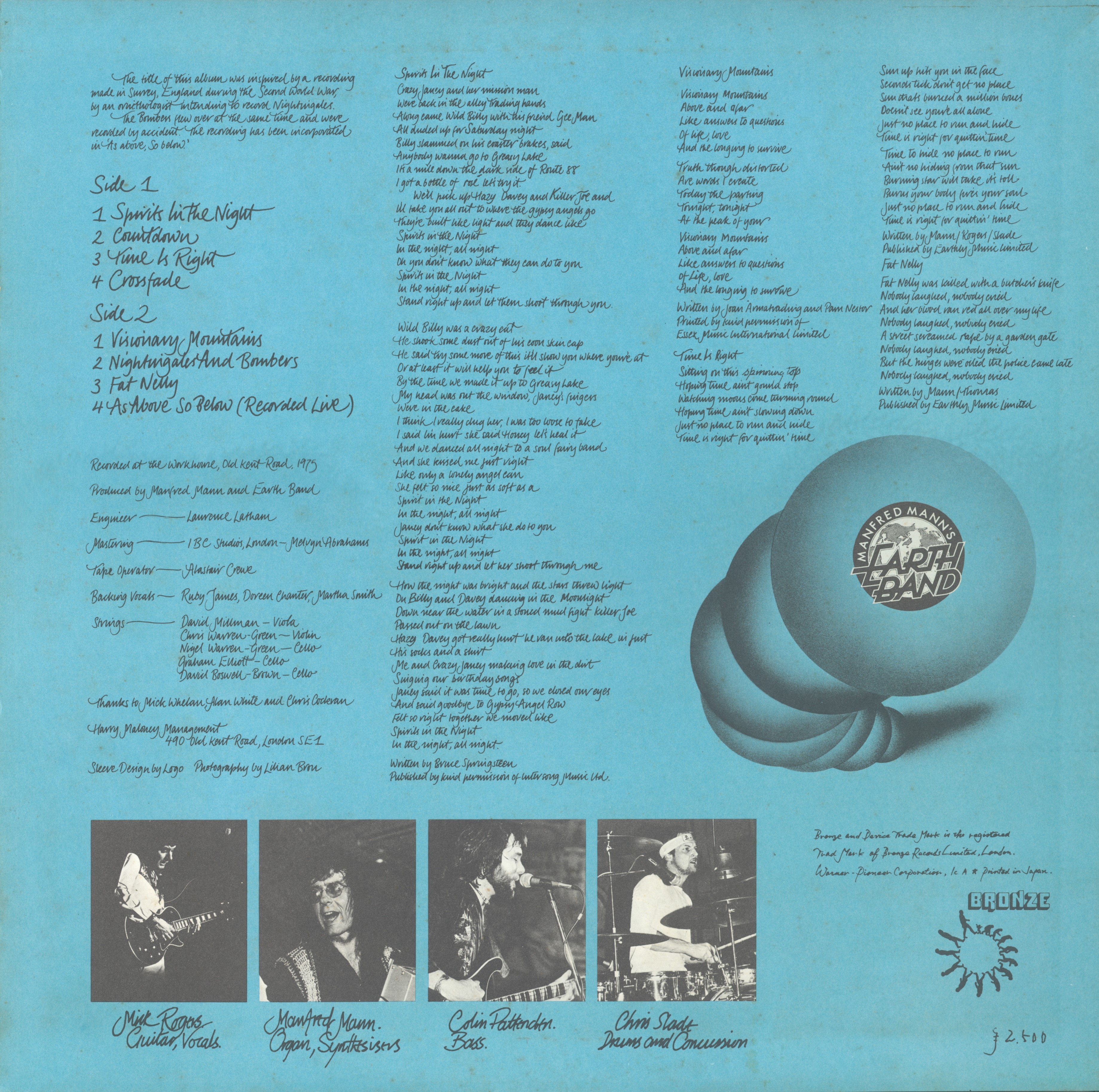 Manfred Manns Earth Band Nightingales & Bombers : LP Back JPN