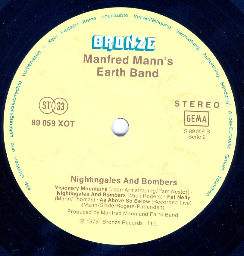 Manfred Manns Earth Band Nightingales & Bombers : LP B germany