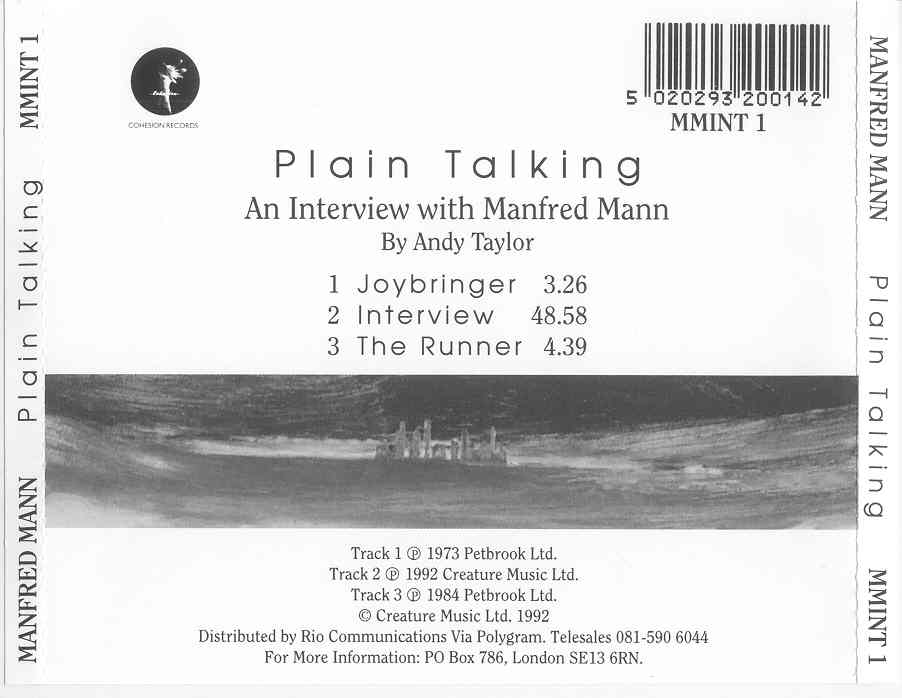 Manfred Manns Earth Band Plain Talking : Back