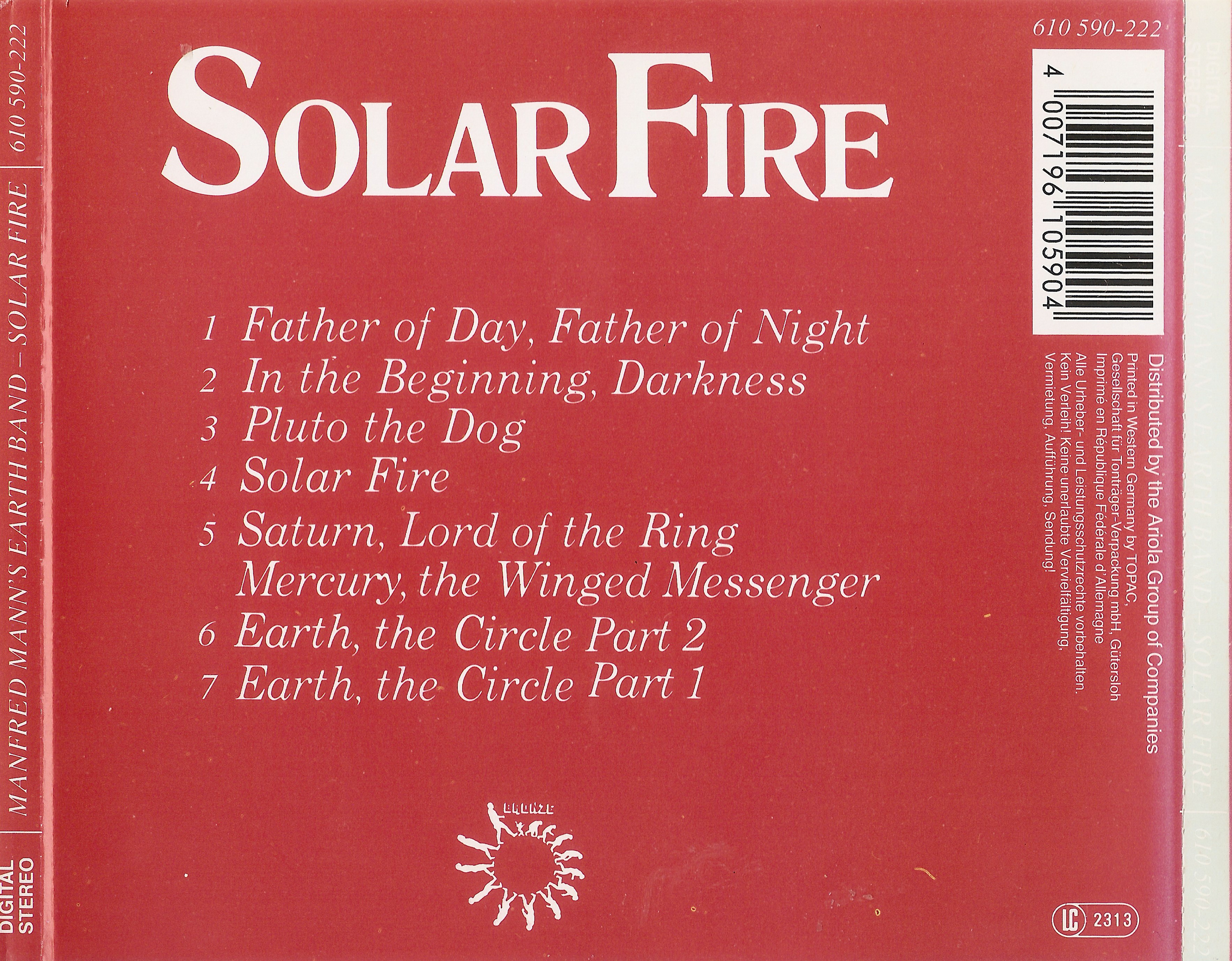 Manfred Manns Earth Band Solar Fire : Back DE