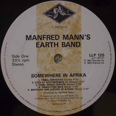 Manfred Manns Earth Band Somewhere In Afrika : LP A
