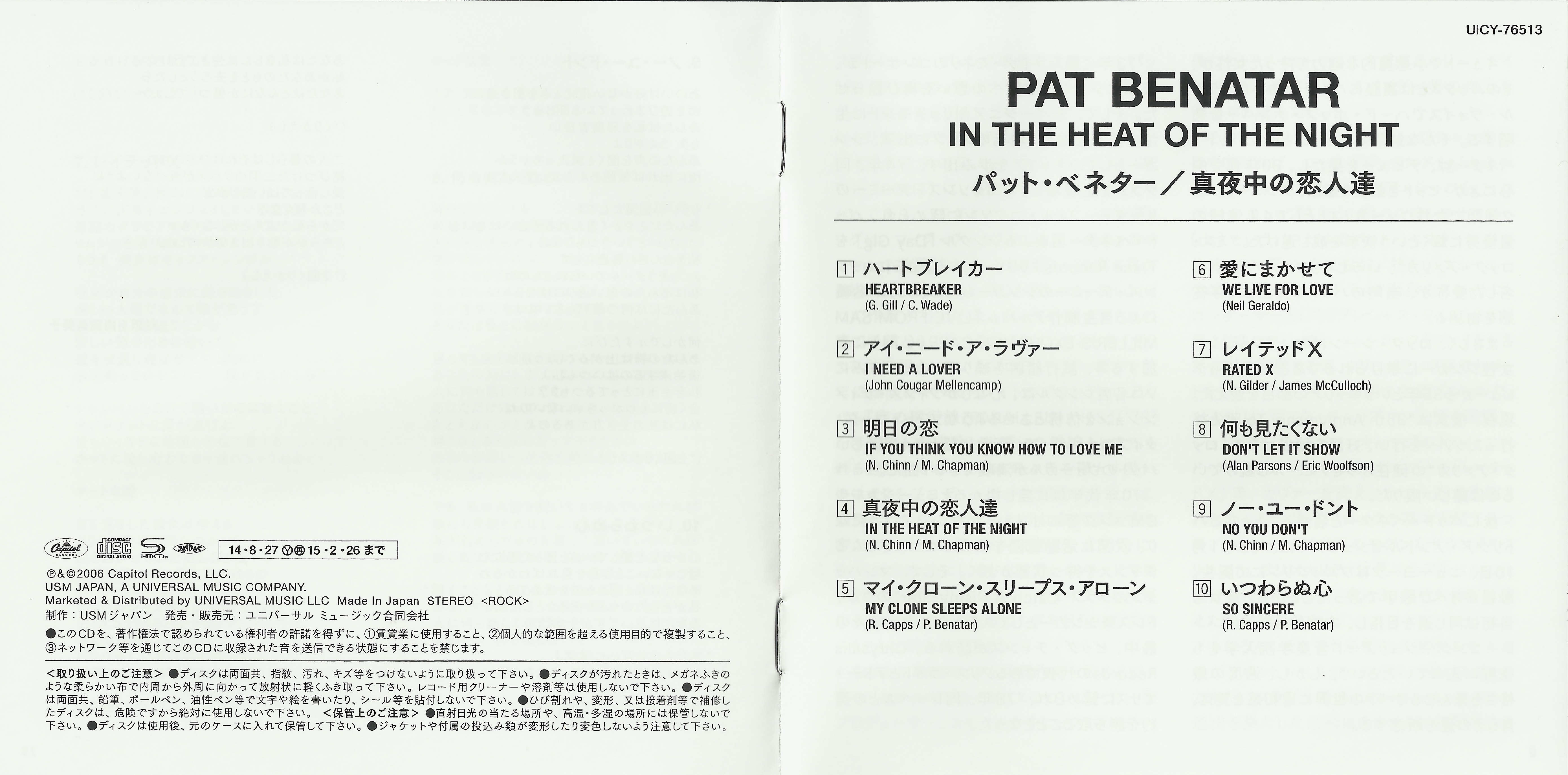 Pat Benatar In The Heat Of The Night : booklet1