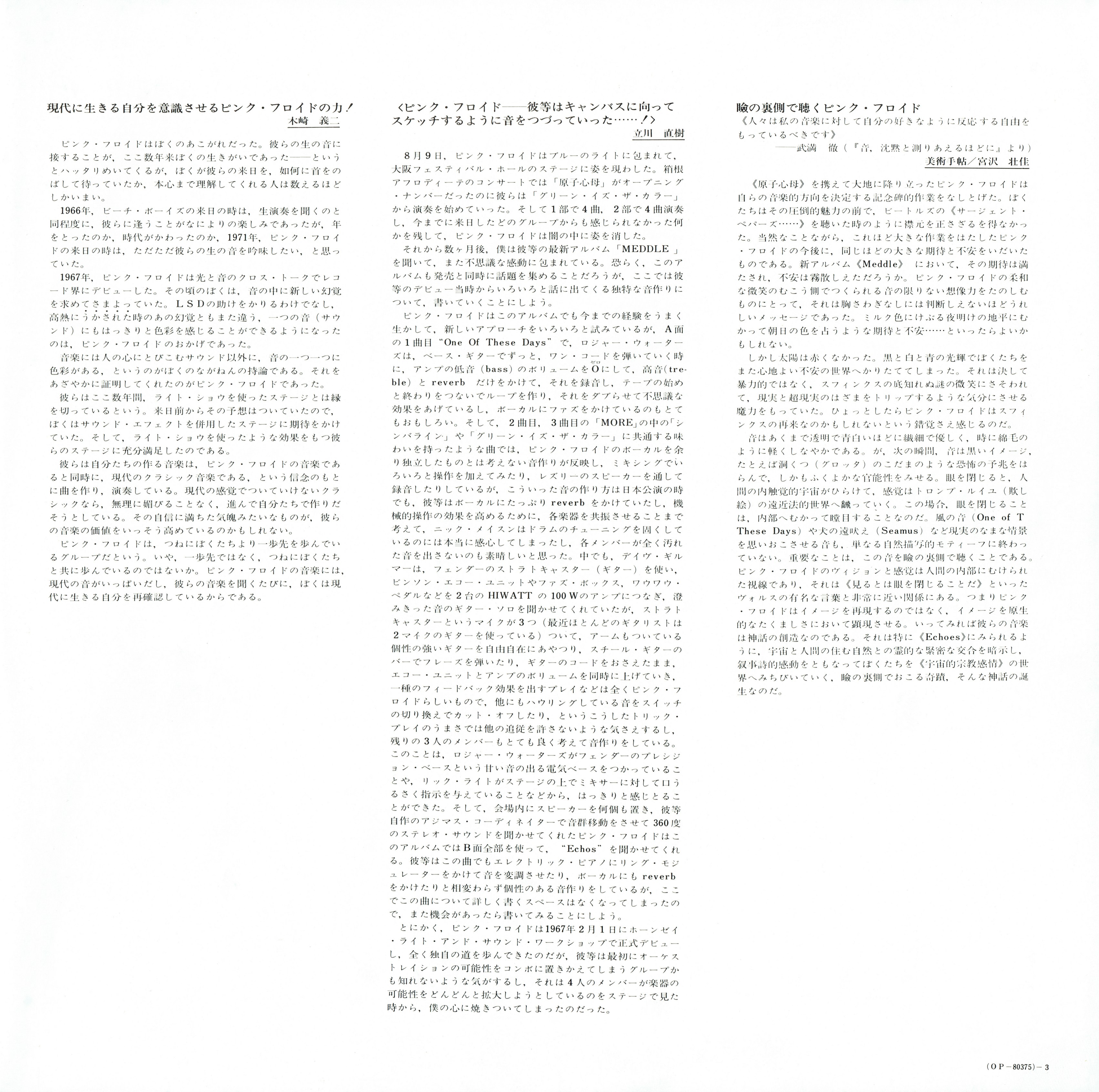 Pink Floyd Meddle : LP insert03 jpn