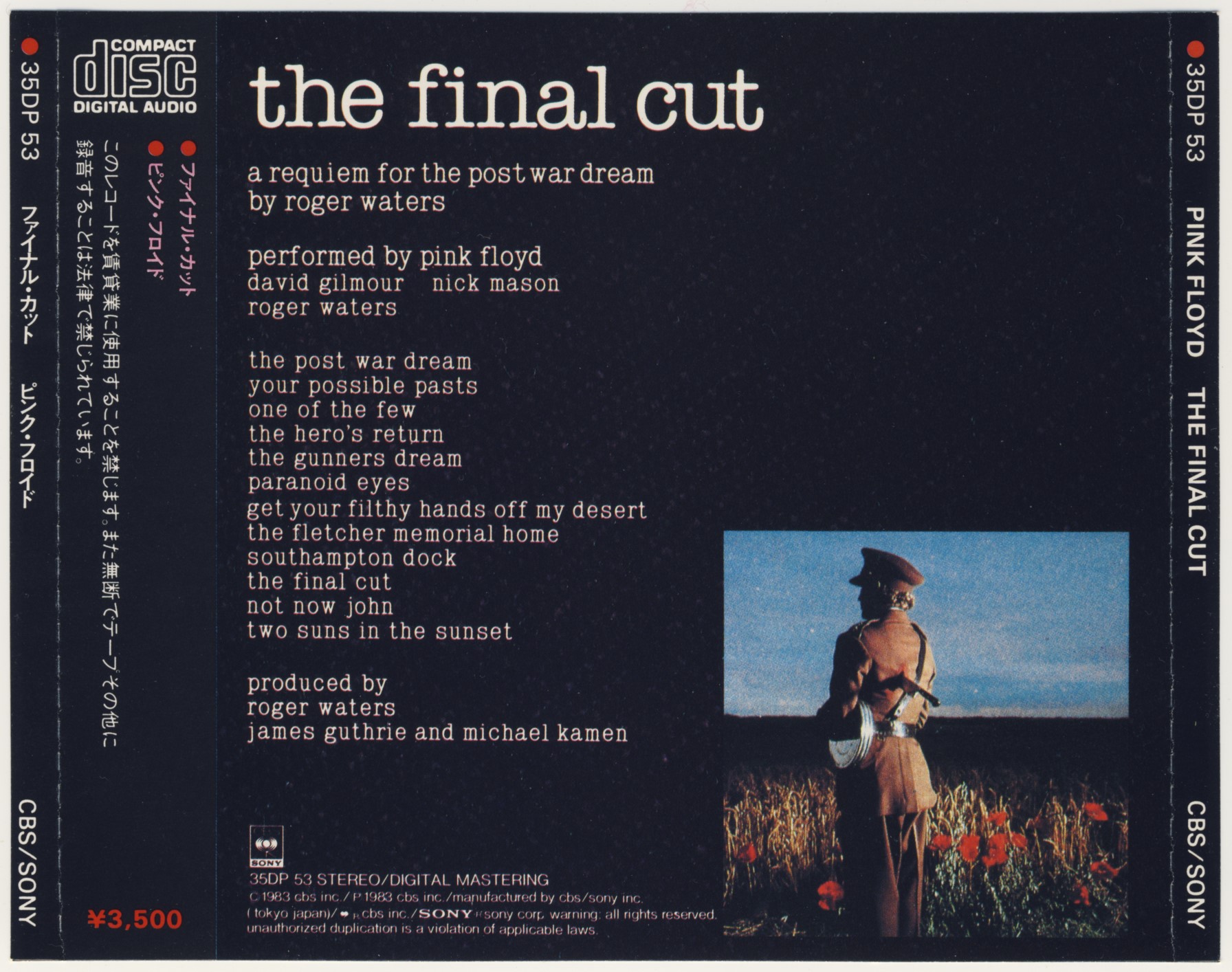 Pink Floyd The Final Cut : Back JPN