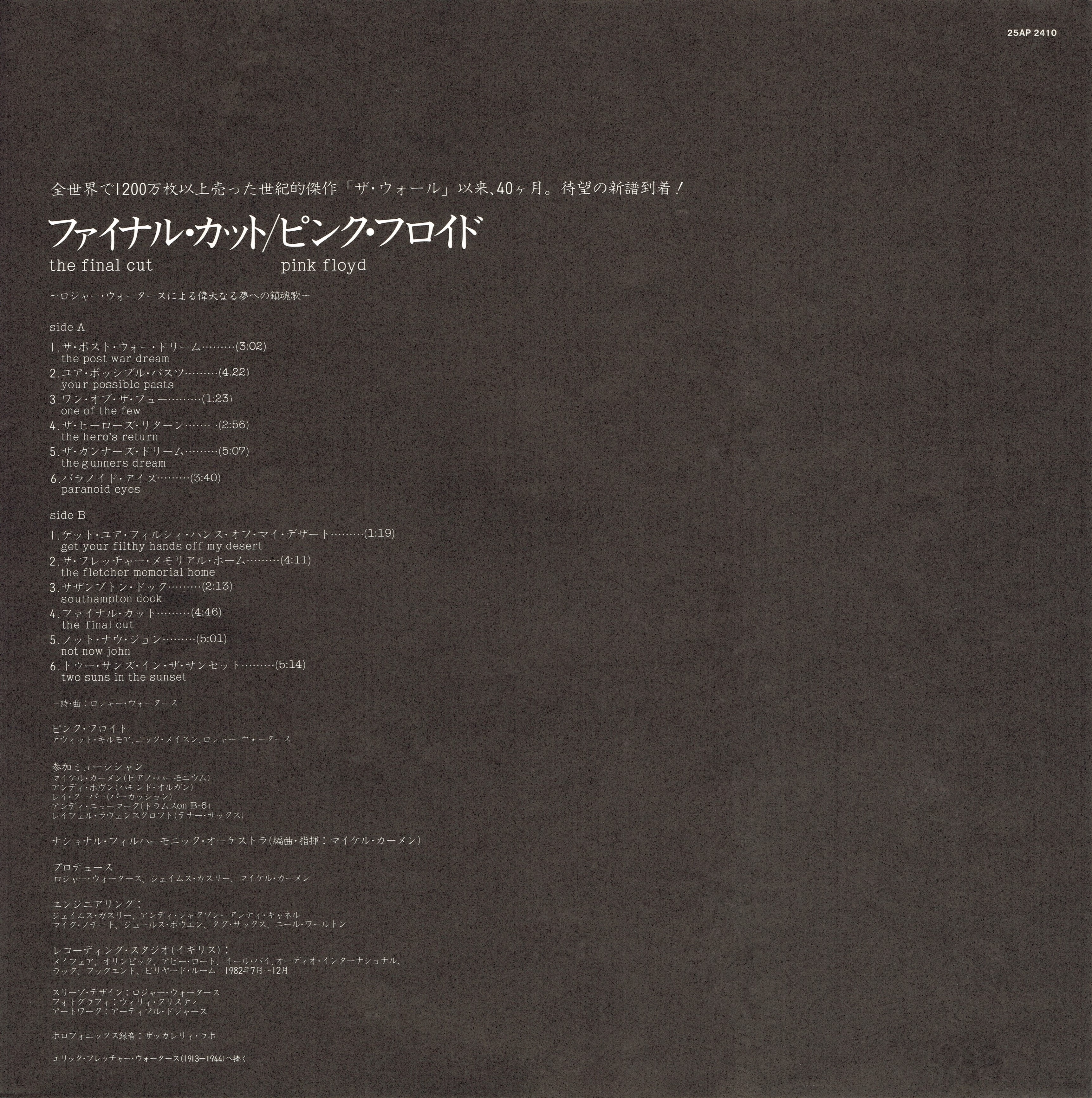 Pink Floyd The Final Cut : LP Sleeve 1 JPN