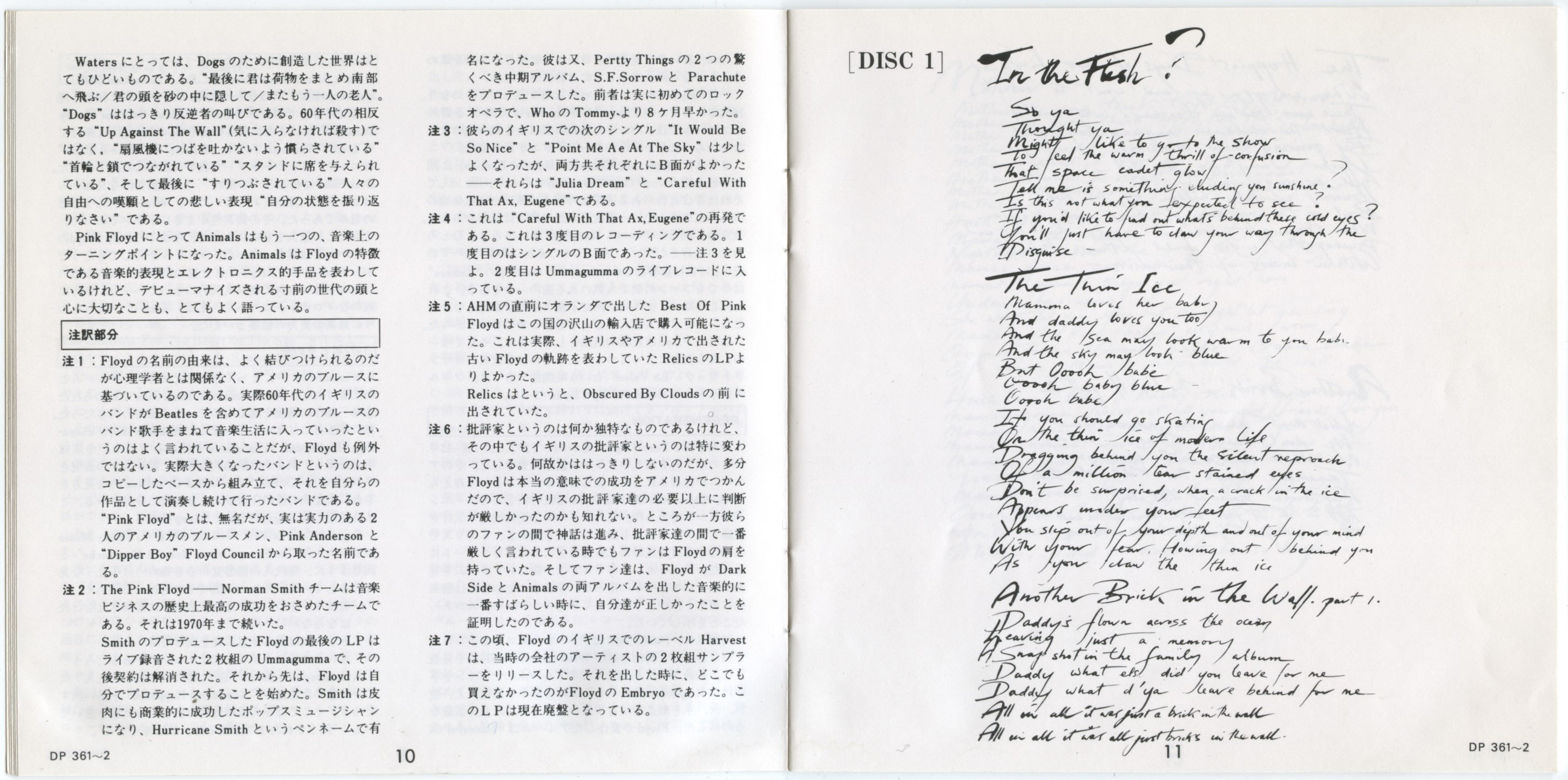 Pink Floyd The Wall : Booklet 7 JPN