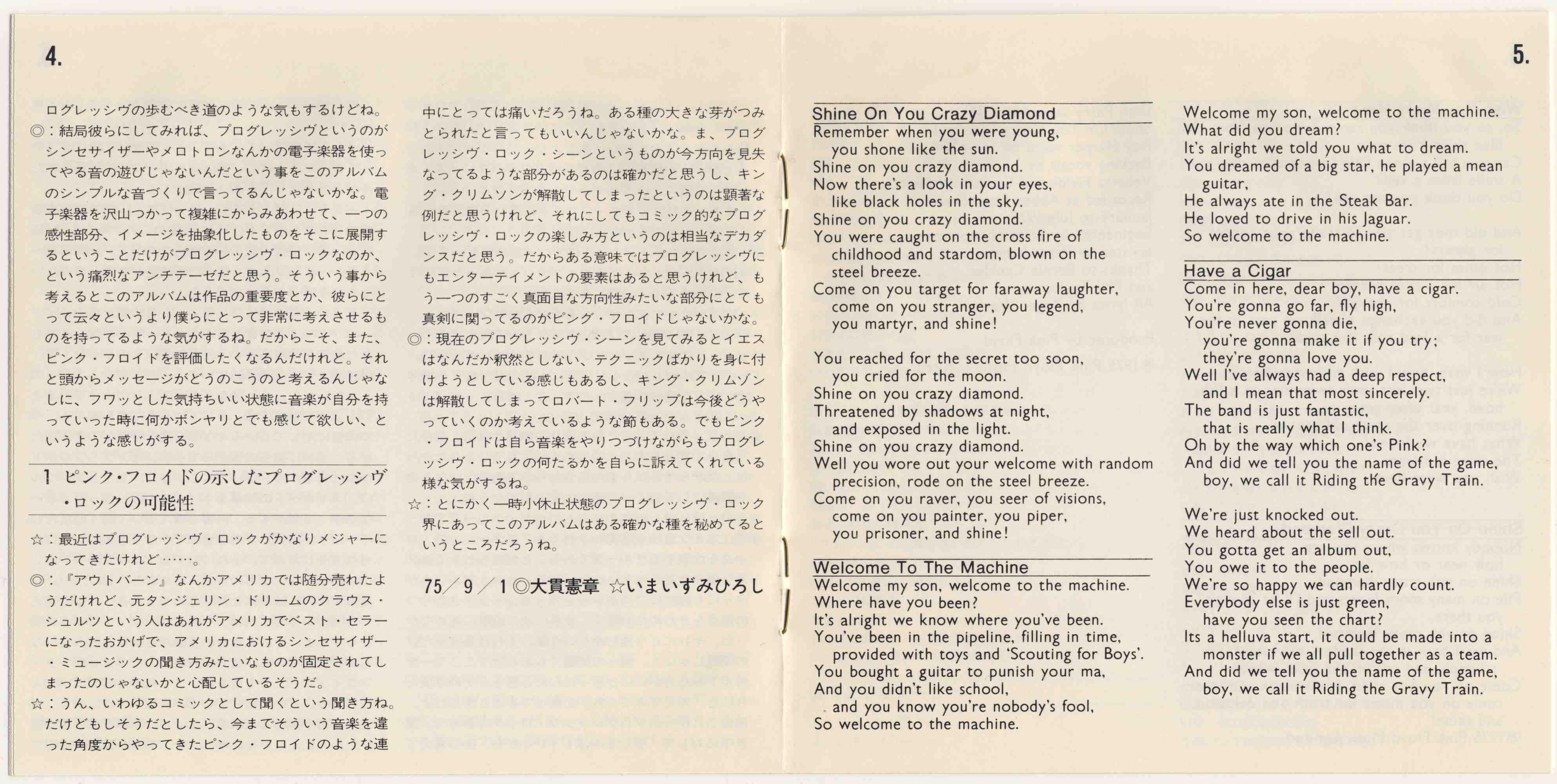 Pink Floyd Wish You Were Here : Booklet 4 JPN