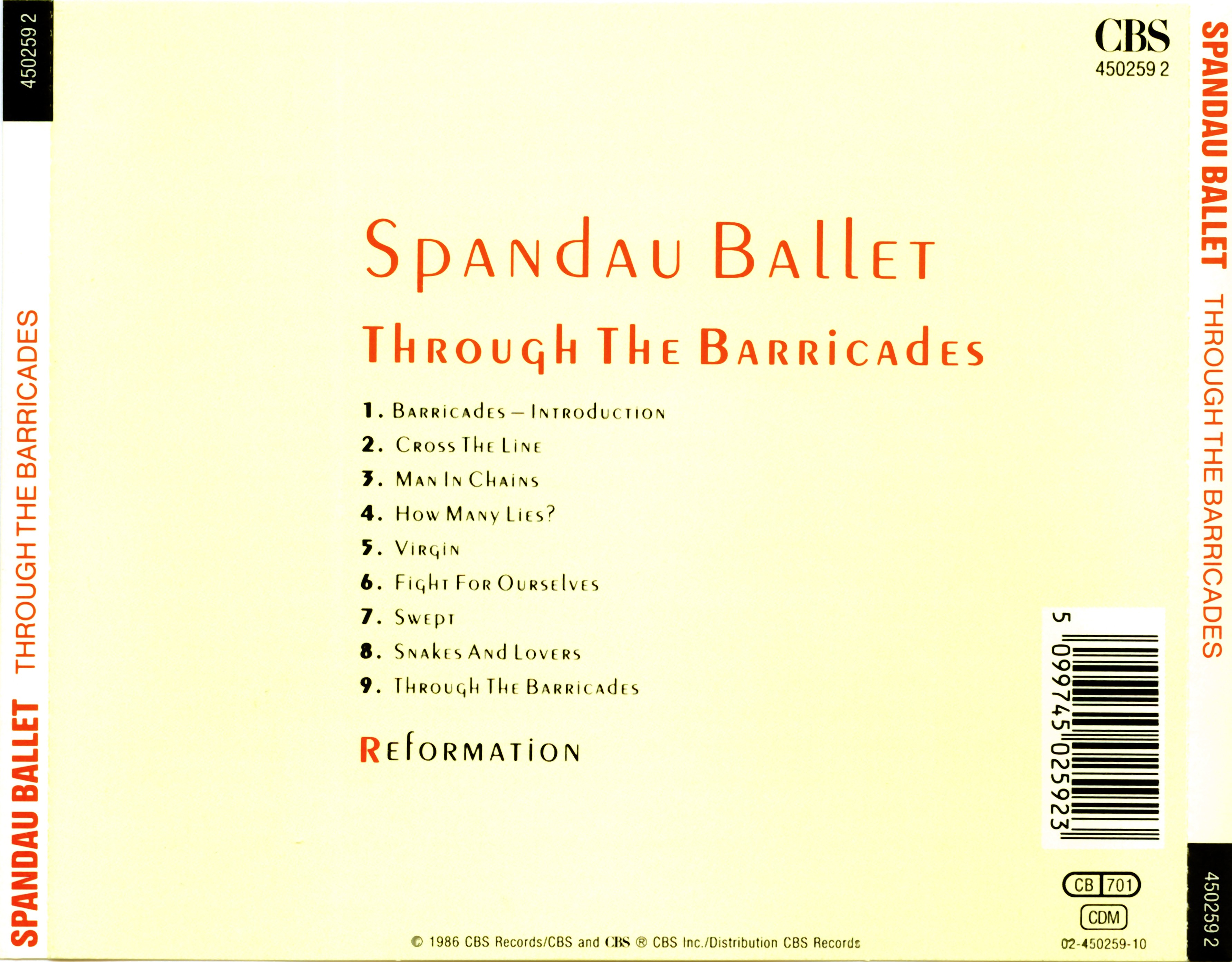 Spandau Ballet Through The Barricades back
