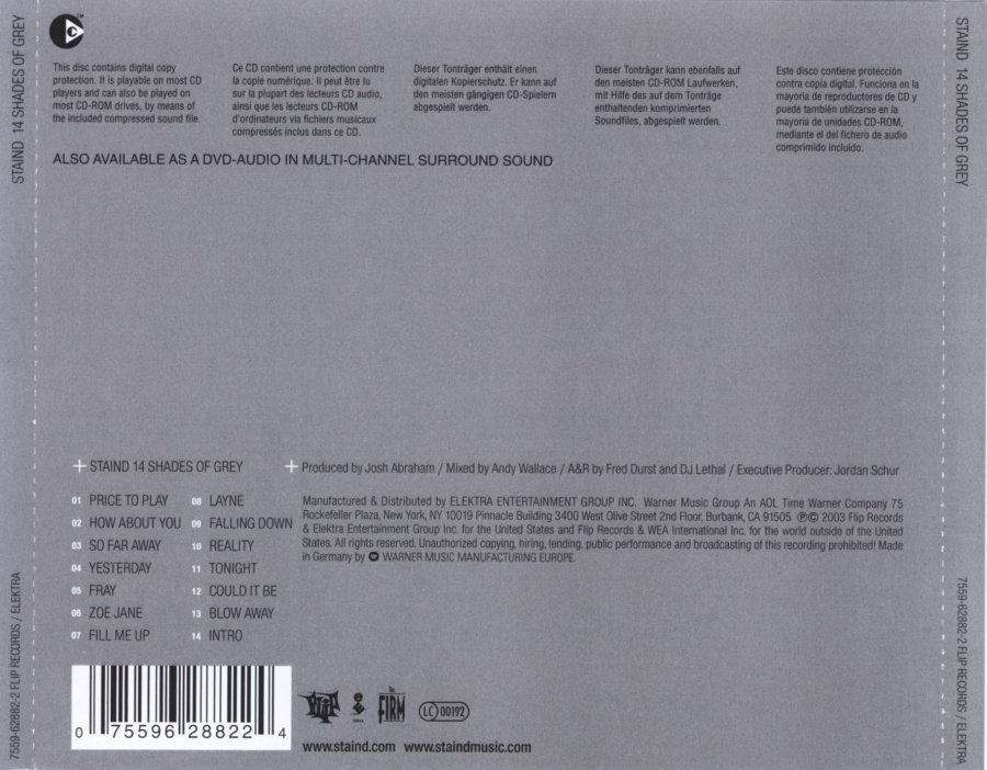 Staind 14 shades of grey back