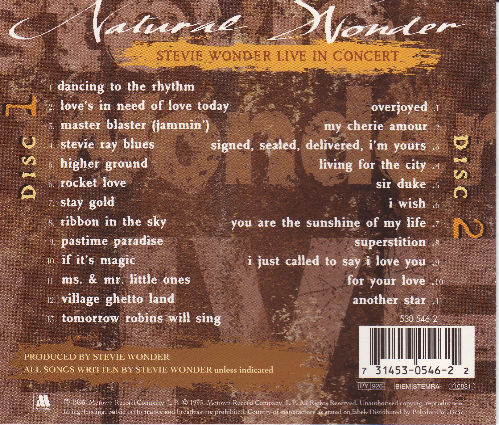 Stevie Wonder Natural Wonder : Back