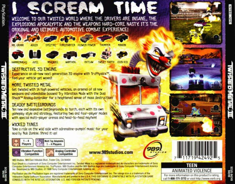Twisted Metal 3 NTSC PSX BACK